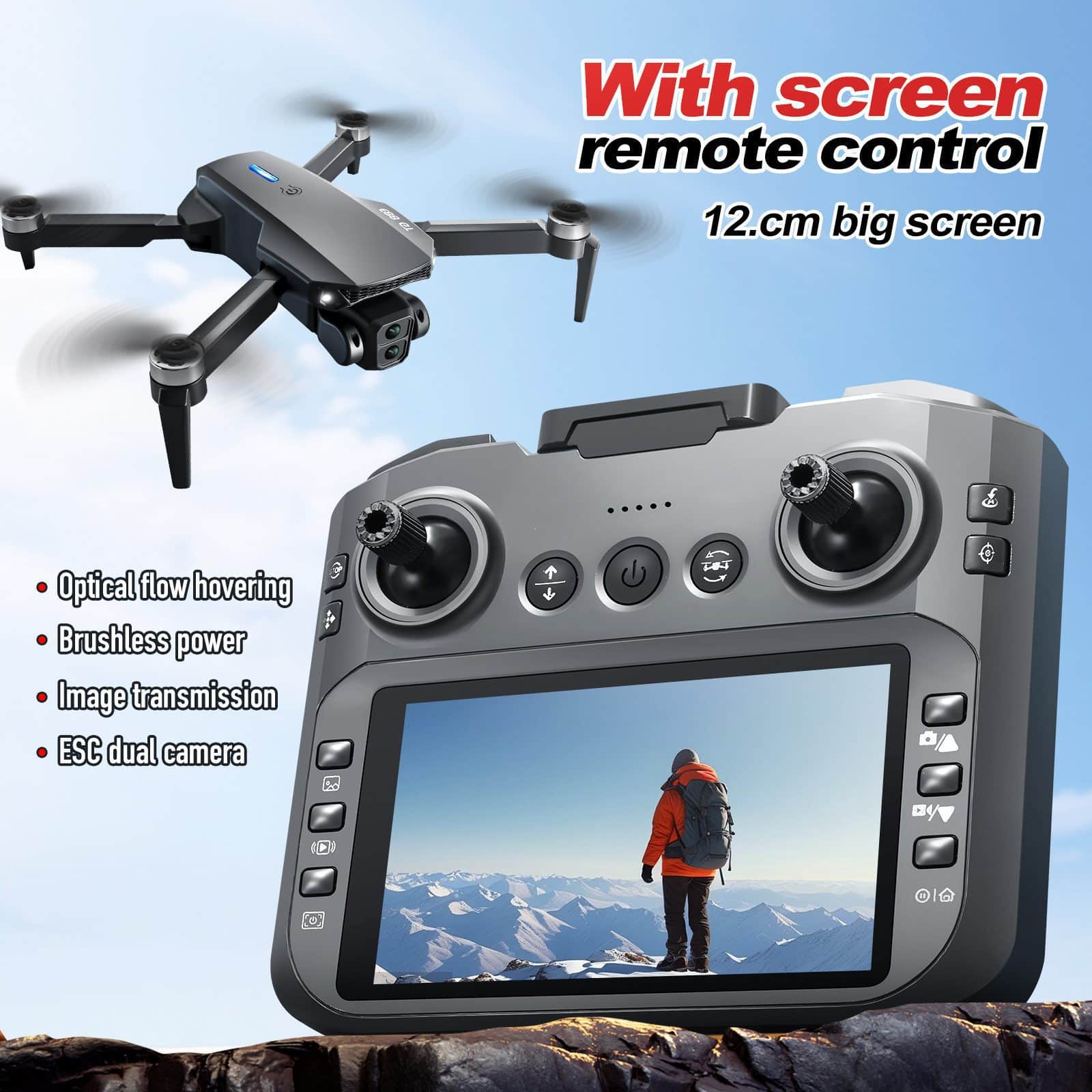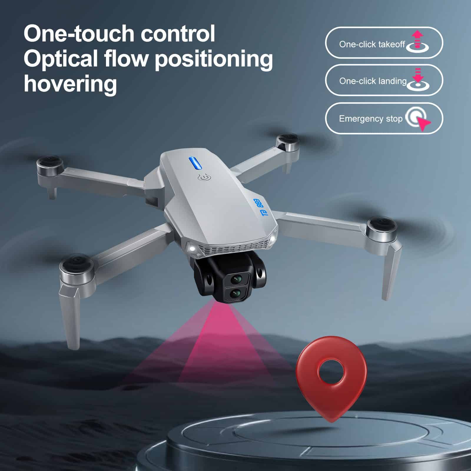 Le E88GT est un drone pliable doté d'un écran intégré de 4,3 pouces pour un affichage en temps réel. Équipé de moteurs sans balais et d'un système de positionnement par flux optique, il garantit un vol stable et des images nettes. Il offre un démarrage, un décollage/atterrissage et un roulis en un seul clic, ainsi qu'un contrôle gyroscopique précis à 6 axes pour l'ascension, la descente, les mouvements directionnels et la direction. Parmi les fonctions supplémentaires, citons le mode sans tête, le changement de caméra et l'étalonnage rapide, qui offrent une expérience de vol professionnelle pour tous les niveaux de compétence.