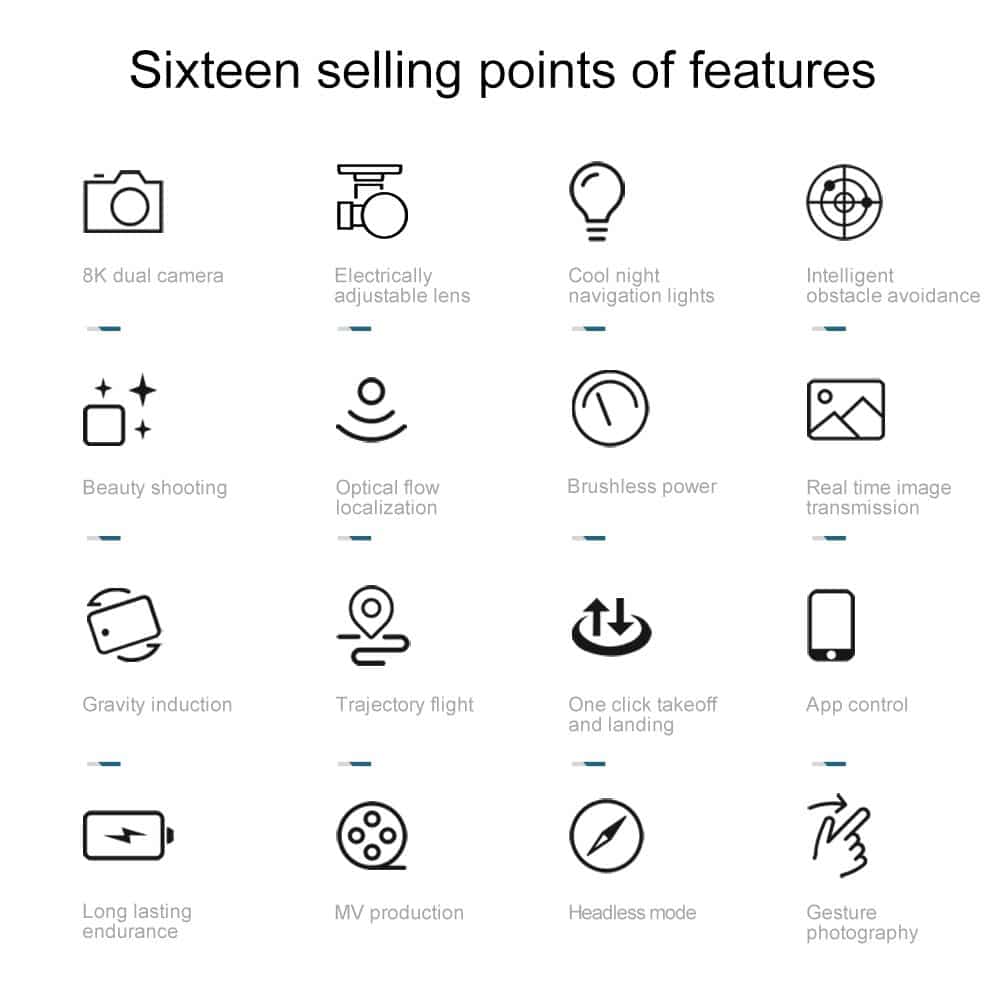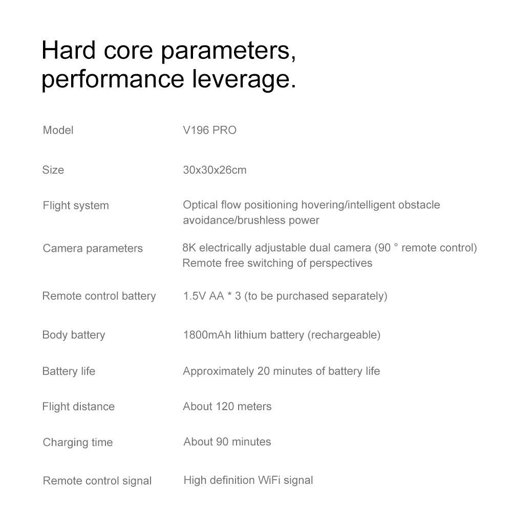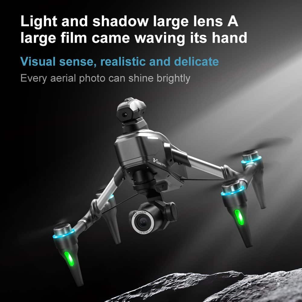 Drone quadricoptère jouet V196 avec éclairage sympa, évitement d'obstacles à 360°, vol stationnaire optique, caméra à télécommande réglable électriquement, double objectif avec zoom 50x, suivi de vol Waypoint, photographie gestuelle, effets beauté, décollage et atterrissage en un clic, mode sans tête.