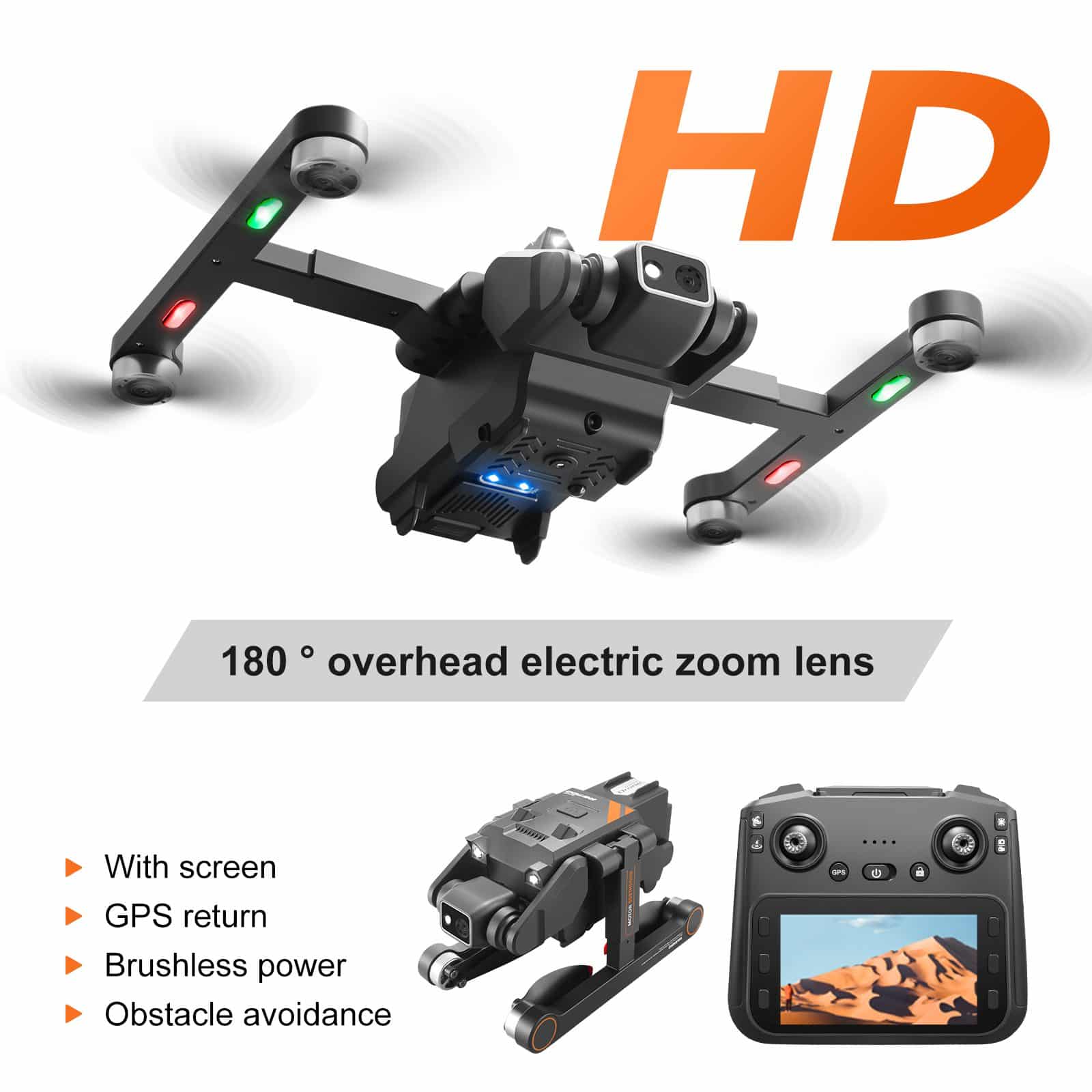 Drone GPS, écran de contrôle à distance HD 4,5 pouces, transmission d'images en temps réel 5G, suivi GPS surround, positionnement GPS, double mode GPS + flux optique, retour GPS en un clic, retour GPS intelligent (retour à distance, retour en cas de batterie faible, retour en cas de fuite), évitement d'obstacles laser à 360°, caméra avant à réglage électrique (stabilisation électronique Eis), suivi intelligent, vol stationnaire, contrôle par la paume de la main, drone avec positionnement cartographique en temps réel, prise de photos par geste, batterie longue durée.