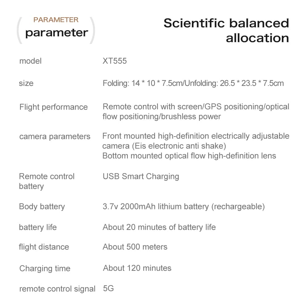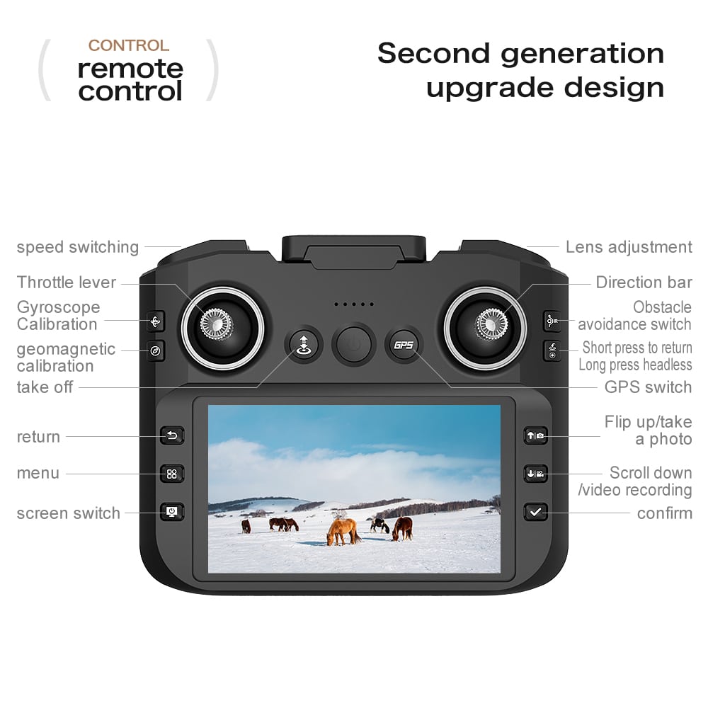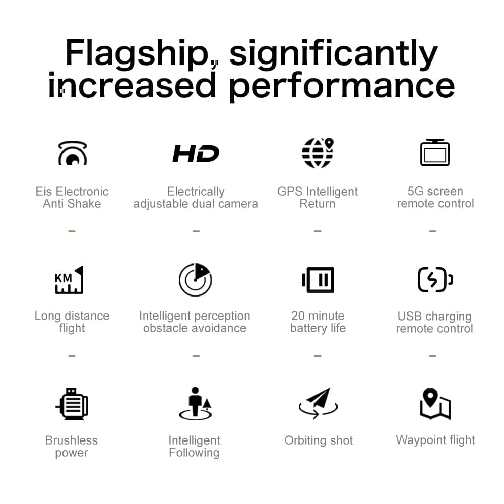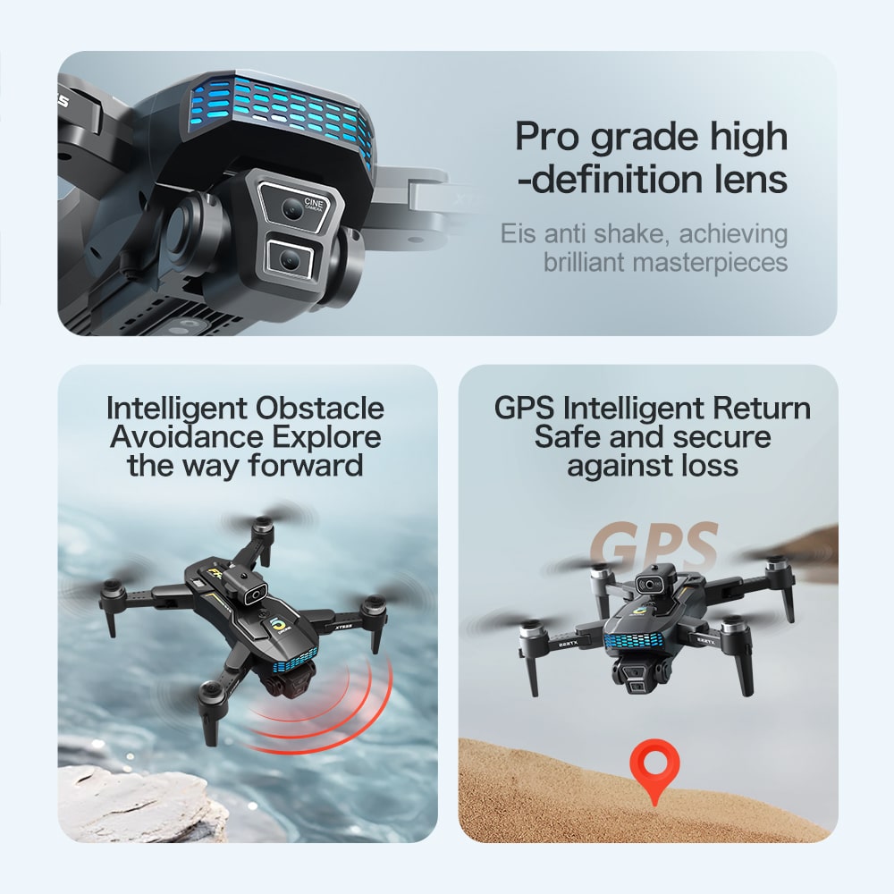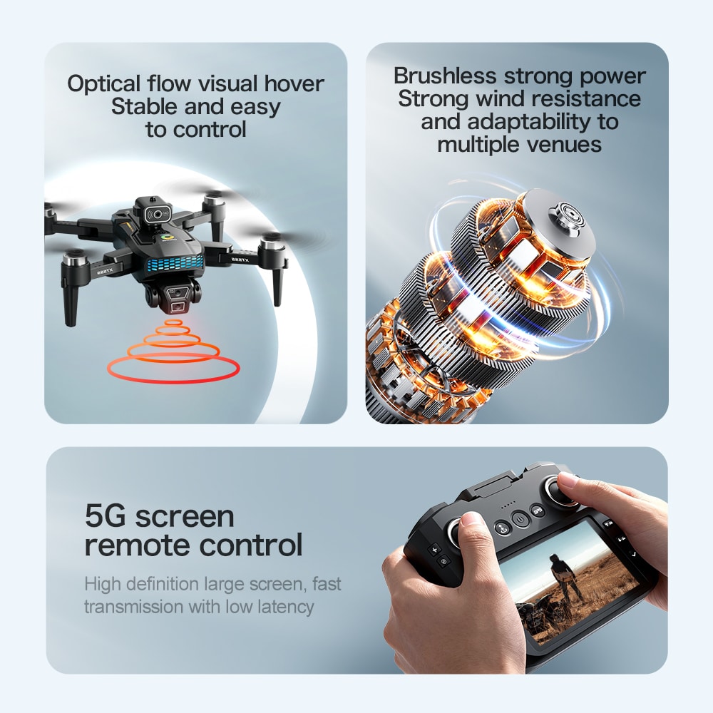 Ce drone pliable de taille moyenne intègre la transmission 5G et Wi-Fi pour la photographie aérienne professionnelle. Il est équipé d'un système à double caméra avec un objectif grand angle à l'avant et une caméra à flux optique à l'arrière pour un positionnement précis, tous deux stabilisés par un servo-cardan et un stabilisateur d'image électronique (EIS). La télécommande comprend un grand écran de 4,3 pouces pour la vidéo HD en temps réel. Grâce au GPS, elle permet des fonctions de retour à la base précises à l'aide d'une seule touche. Une batterie de 2000 mAh offre environ 20 minutes d'autonomie de vol. Les fonctionnalités intelligentes comprennent la planification de points de passage, le mode « follow-me » et le contrôle gestuel. Son capteur optique d'évitement d'obstacles garantit notamment la sécurité, tandis que sa conception légère de 192 g l'exempte de nombreuses exigences d'enregistrement, offrant à la fois puissance et portabilité.
