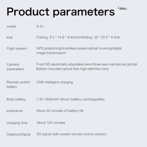 Le drone GPS professionnel S-X1 est conçu pour l'imagerie aérienne avancée. Il est équipé d'un cardan EIS à 3 axes pour des images 4K d'une stabilité à toute épreuve. Sa capacité exceptionnelle réside dans la transmission vidéo en direct synchronisée sur trois écrans interconnectés via la technologie 5G. Avec une autonomie de vol robuste de 5 km, il utilise un double positionnement GPS et flux optique pour une navigation précise. Ses fonctions intelligentes comprennent les modes Suivi, Surround et Point d'intérêt, tandis que la sécurité est assurée par un système laser d'évitement d'obstacles et un retour automatique (batterie faible/signal/distance). Ce système offre une expérience de vol collaborative et professionnelle pour les applications exigeantes.
