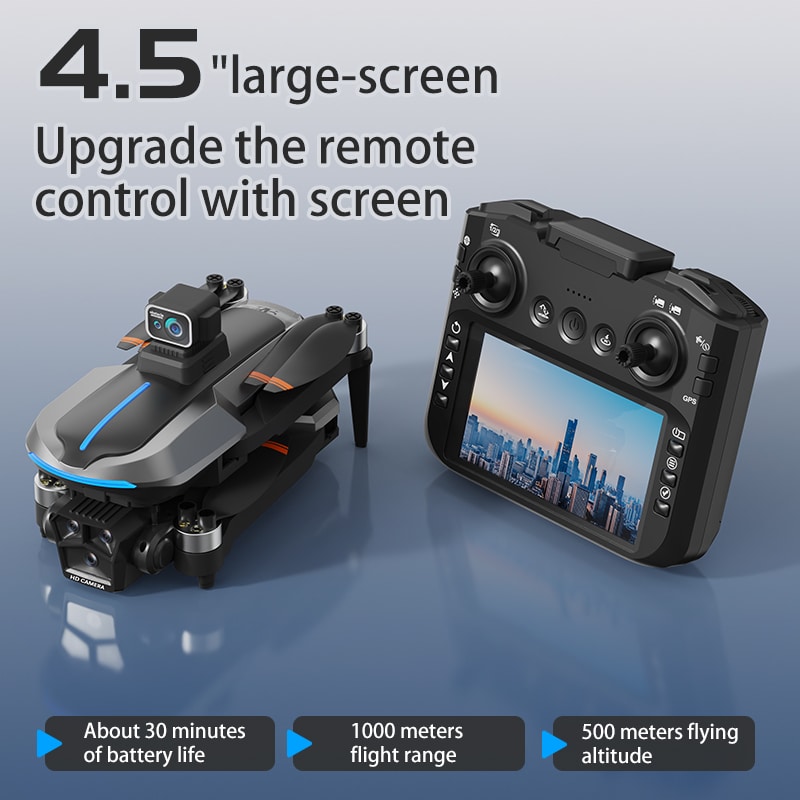 L'AE8 est un drone GPS professionnel doté d'une capacité 4K HD et d'une esthétique visuelle améliorée avec un éclairage sympa. Il est équipé d'un écran de commande à distance HD de 4,5 pouces et offre une transmission d'images en temps réel 5G. Le drone dispose de fonctionnalités GPS avancées, notamment le suivi intelligent, le vol stationnaire et la prise de photos par geste, ainsi que des fonctions de sécurité complètes telles que l'évitement d'obstacles à 360° et plusieurs options de retour. De plus, son double mode de positionnement et sa longue autonomie garantissent des performances fiables pour diverses tâches aériennes.