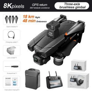 - Caméra 4K réglable (cardan à stabilisation mécanique sur trois axes + stabilisation électronique et anti-tremblement + évitement d'obstacles par laser)